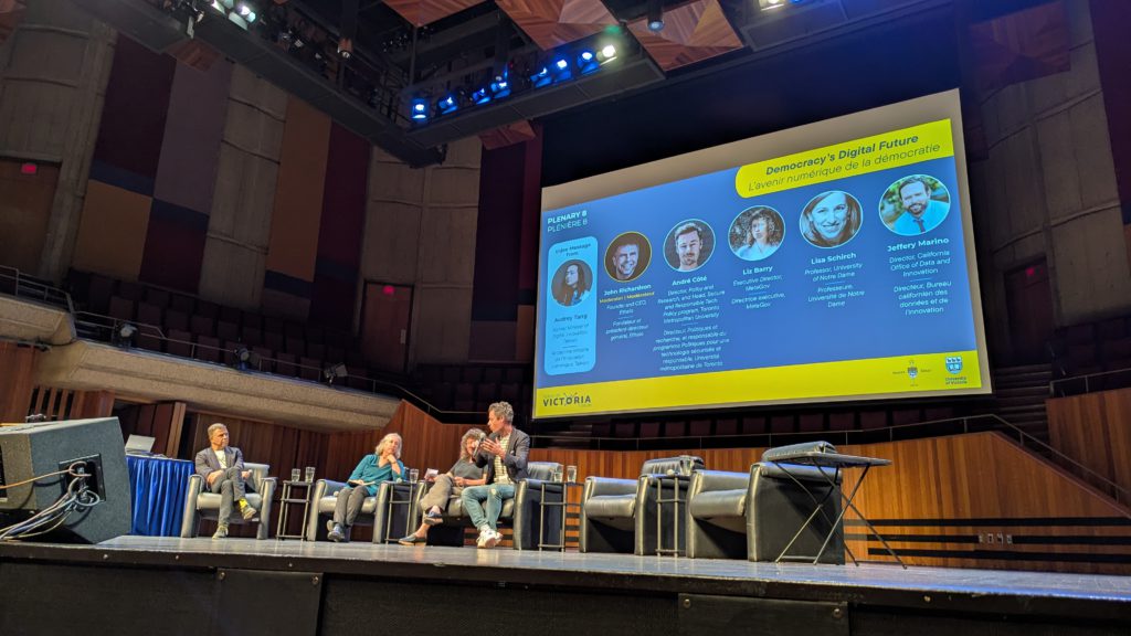 Co-creation also took centre stage at the day three opening keynote panel on digital democracy. This session featured a mixture of pre-recorded message, livestream video attendance, on stage panelists and a real-time technology-driven exercise in stakeholder engagement through the Ethelo software platform.