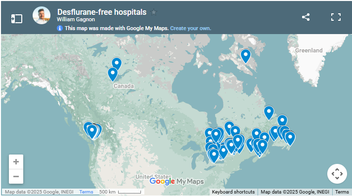It’s worth noting that as well as being far more polluting than than its alternatives, desflurane is about 4.4x more expensive than sevoflurane per bottle and about 15x more expensive for equivalent anesthetic effect when looking at the cost per hour. Similarly, we learned through discussions on planetary health, that between 85% and 99% of purchased nitrous oxide is estimated to be (and shockingly) lost through piping leaks in Canadian hospitals before it makes it to clinical use.